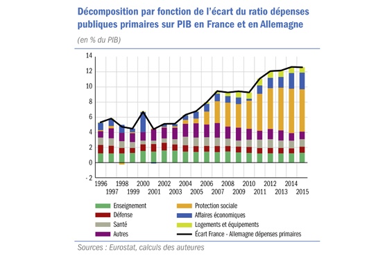 – Toujours selon ces hypothèses, l’Etat et les collectivités baisseraient respectivement de 10 milliards d’euros et de 7 milliards leurs dépenses tandis que la Sécurité sociale augmenterait les siennes de 61 milliards.