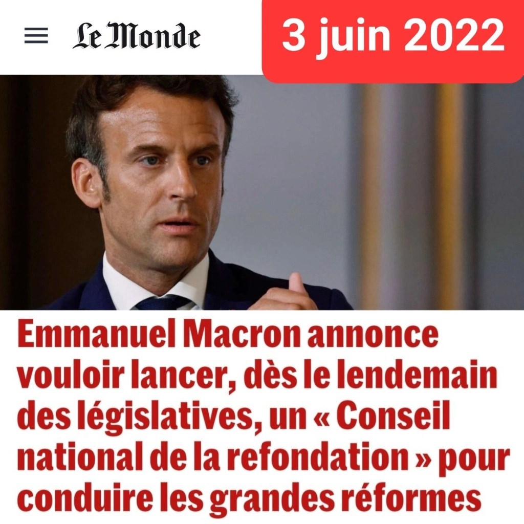 8 juin 2022 — CONSEIL NATIONAL DE LA REFONDATION : UN « ENTERREMENT » DES LÉGISLATIVES ET DU PARLEMENT ? Emmanuel Macron a annoncé ce week-end la création d’ …