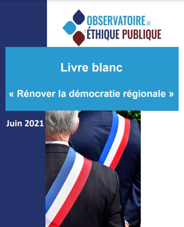 L’Observatoire de l’éthique publique présidé par René Dosière a souhaité saisir l’opportunité des élections régionales pour publier un livre blanc formulant 45 propositions afin « de donner un nouveau souffle à la démocratie régionale ». Fort de son expérience d’un premier livre blanc lors de l’élection municipale de 2020, l’Observatoire propose ici de nouvelles pistes pour réformer le droit des collectivités territoriales et améliorer les pratiques et comportements des acteurs politiques.