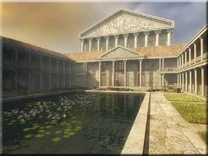Dans l’enceinte du palais royal, dans le Brucheum, vous auriez trouvé le Musaeum et la Bibliothèque – deux édifices magnifiquement décorés dans un campus de bâtiments à l’architecture complexe et de jardins fleuris. Le bâtiment du Musaeum comprenait une longue passerelle couverte et une grande salle à manger commune, où les érudits dînaient et échangeaient leurs idées. Le Musaeum contenait également des salles d’exposition (d’où vient le terme moderne de « musée »), des salles d’étude privées, des salles de conférence, des quartiers résidentiels pour les érudits et des théâtres pour les spectacles. La grande bibliothèque était constituée d’une multitude d’étagères de rouleaux de papyrus.