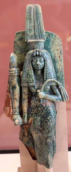 Cette riche chevelure met en valeur une puissance à la fois féminine et divine. Selon l’auteur antique Plutarque (Isis et Osiris 14), lorsque la déesse Isis apprit la mort d’Osiris, elle coupa une boucle de sa chevelure qu’elle consacra dans un temple à Coptos où elle fut exposée comme une sainte relique.