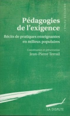 Bien que très différent dans sa forme, l’ouvrage collectif Pédagogies de l’exigence. Récits de pratiques enseignantes en milieu populaire, dirigé par Jean‑Pierre Terrail, cherche également les traces dans l’école d’aujourd’hui de pratiques d’enseignement démocratisantes. Le moteur de cette entreprise collective s’alimente des nombreux travaux du directeur de l’ouvrage réalisés depuis les années 1990 sur la question de l’école.
