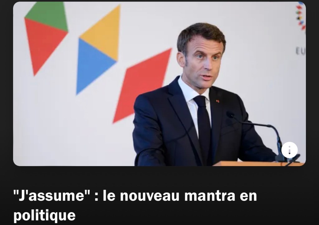 Comment en est-on arrivé de ça à Macron déclarant “assumer l’embauche d’Alexandre Benalla” au service de sécurité de l’Elysée ? ou à Jean-Michel Blanquer qui “assume ses vacances à Ibiza » ? à Jean-Luc Mélenchon qui “assume” son tweet de soutien à Adrien Quatennens ? ou pire, au maire LR de Saint-Etienne : mis en cause dans un sordide chantage sexuel, le maire Gaël Perdriau déclare qu’il “assume sa décision » de ne pas démissionner.