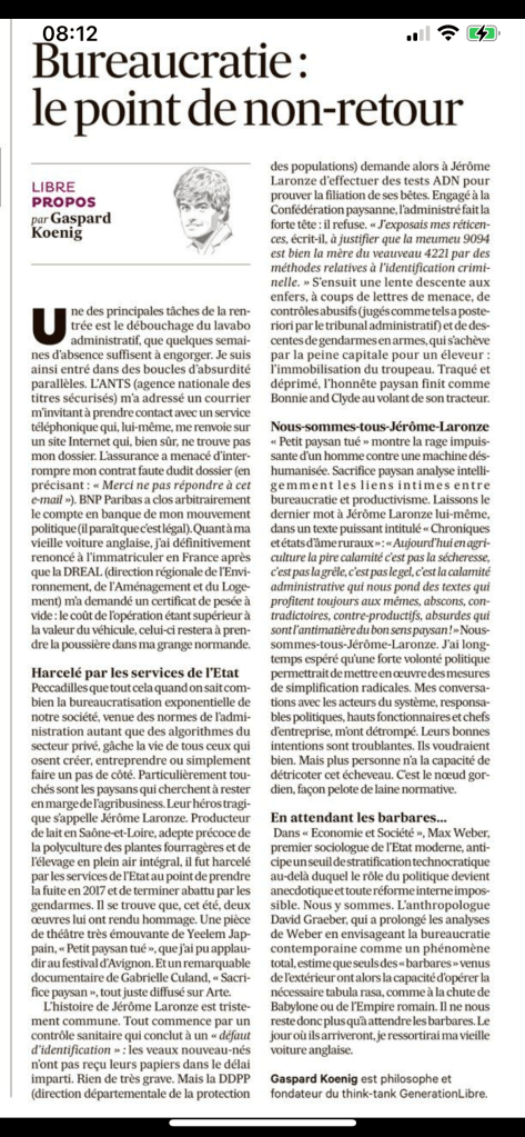 « Je ne crois plus possible de réformer la bureaucratie (publique comme privée).