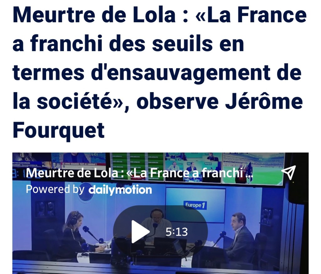 Invité d’Europe Matin lundi, Jérôme Fourquet, directeur de département à l’IFOP et auteur de « L’Archipel français, une nation multiple et divisée », est revenu sur le meurtre de Lola, 12 ans, tuée le 14 octobre dernier.