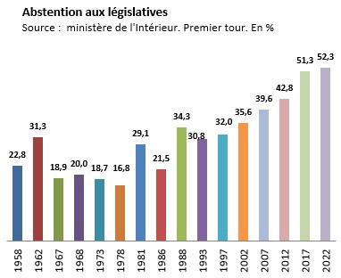 Graphique 3. Évolution de la participation par élection (1958-2022)