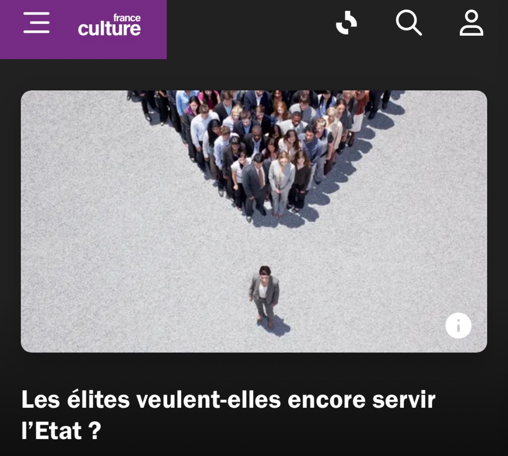 Le vendredi, Avec philosophie a coutume de puiser un sujet dans l’actualité. A l’occasion de la journée spéciale de France Culture autour de la notion de service public, Géraldine Muhlmann traite avec philosophie la question suivante : les élites veulent-elles encore servir l’Etat ?