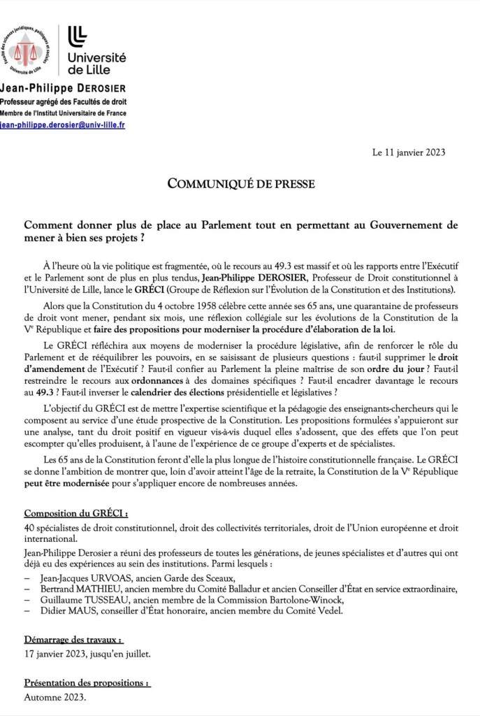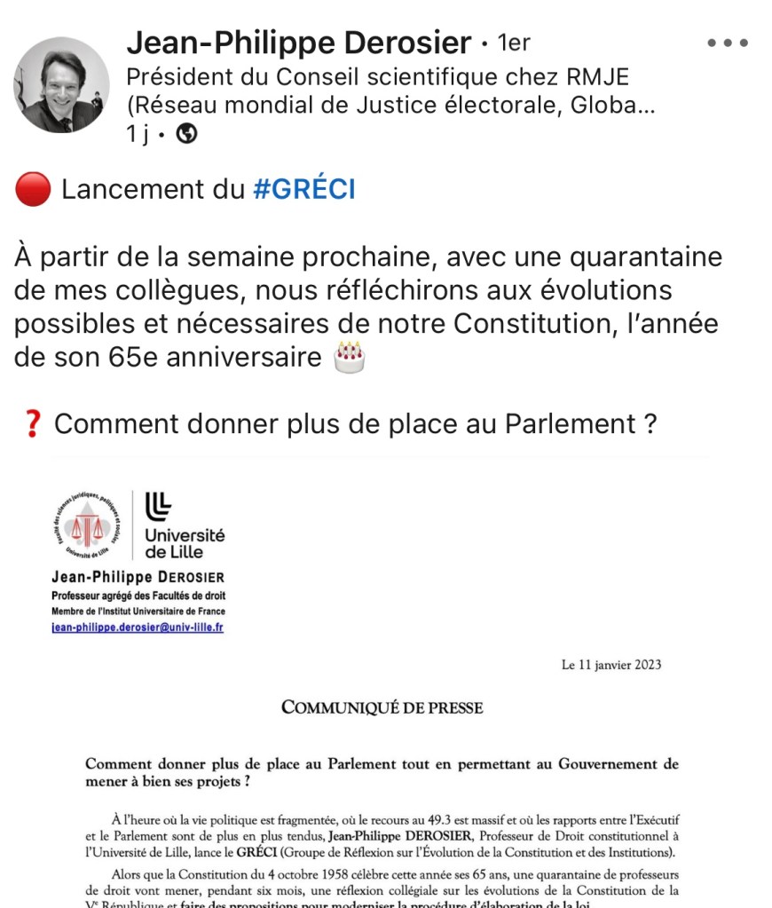 Ve République : le professeur Derosier lance un groupe de réflexion pour rénover la Constitution