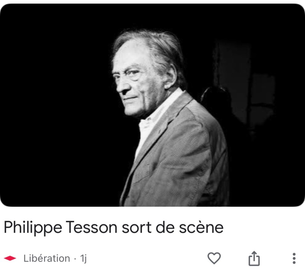 Si quelqu’un incarnait l’esprit français, c’était bien Philippe Tesson, puits de culture, qui pensait souvent mal. Il y avait en lui du Montaigne, du Voltaire et du Jean d’Ormesson. Tout le théâtre mondial aussi, son autre passion, avec le journalisme. Jusqu’à la fin, il assura la chronique théâtrale du Figaro Magazine. Directeur de L’Avant-Scène, il dirigeait aussi le théâtre de Poche-Montparnasse avec une superbe programmation. Il collaborait enfin, encore tout récemment, au site du Point.