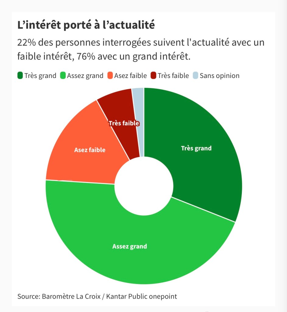 Ce sont les deux faces d’une pièce. Pile, les Français montrent de l’intérêt pour l’actualité. Face, le traitement de l’information provoque de la fatigue et de la lassitude. C’est l’une des conclusions du 36e baromètre de « la confiance des Français dans les médias » du journal La Croix. Après deux années marquées par des informations consacrées au Covid, 76 % des Français interrogés disent suivre l’actualité avec un grand intérêt : c’est 14 points de plus en un an.