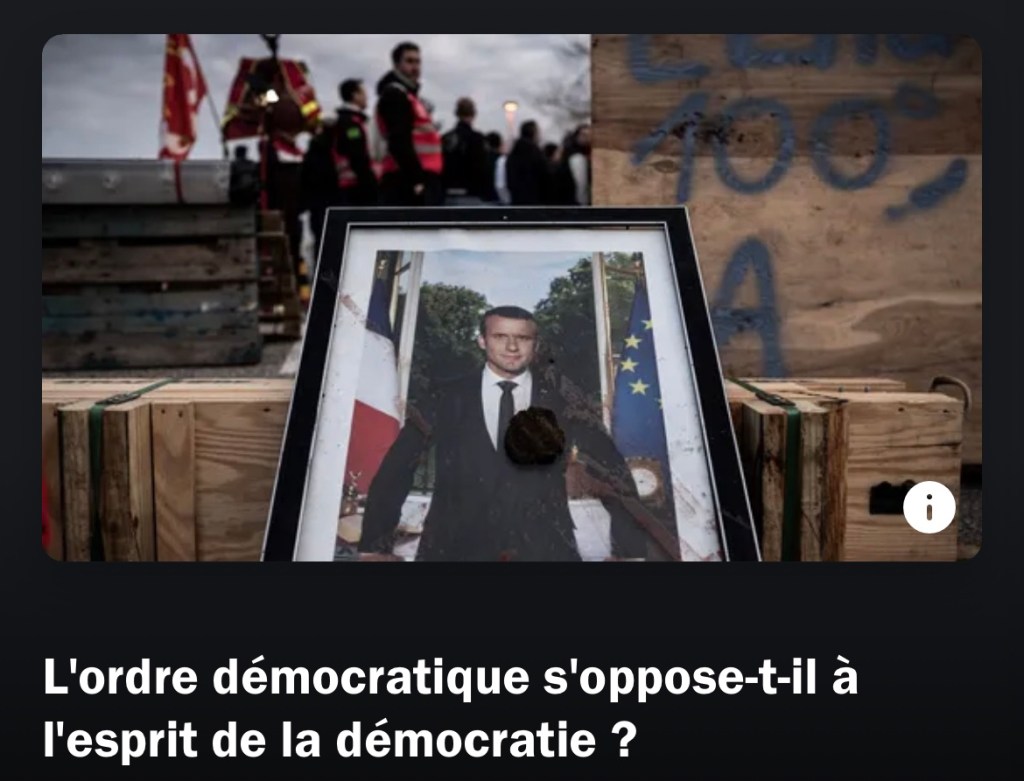 Dans une interview du 22 mars, Emmanuel Macron a dénoncé une contestation issue d’une foule illégitime, se posant en garant de l’ordre démocratique. Alors que le conflit social et politique se poursuit, est-il possible de concilier l’ordre institutionnel avec la radicalité du débat en démocratie ?