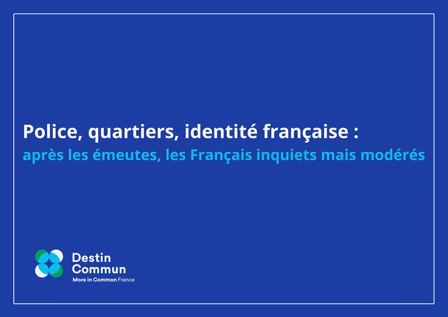 Suite à la mort du jeune Nahel et aux violences urbaines qui ont suivi, les Français ont-ils tous choisi un camp ? Police ou jeunes des quartiers, cagnotte A ou cagnotte B ? Le think tank Destin Commun a interrogé les Français, avec Kantar Public France, pour saisir les différentes visions qui traversent la société française. L’enquête dessine le portrait d’une France anxieuse et consciente des problèmes de fond, mais surtout modérée et nuancée. A deux jours de la fête nationale, les Français expriment un désir de justice mais aussi d’apaisement, et appellent de leurs vœux un débat approfondi et lucide sur les quartiers populaires comme sur la police.