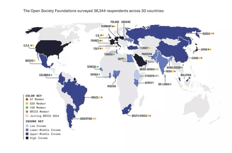 Les pays concernés par le sondageOpen society foundations