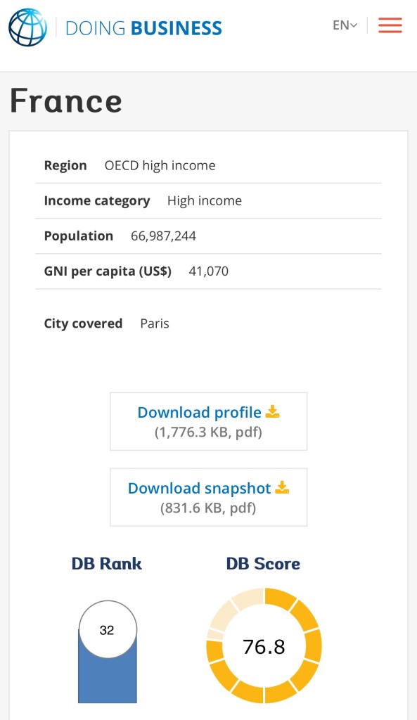 1. LA FRANCE TRÈS MAL NOTÉE – 32eme – DANS L’INDICATEUR MONDIAL DOING BUSINESS
