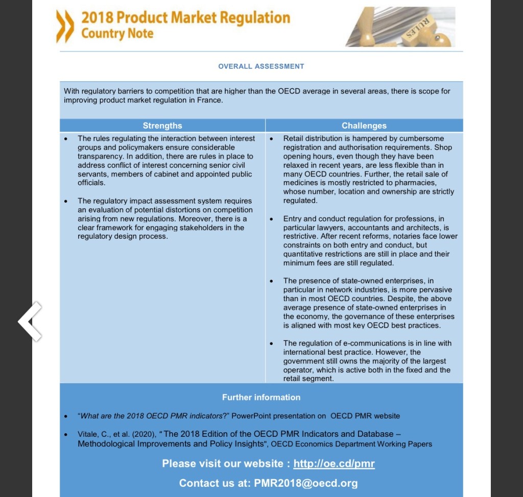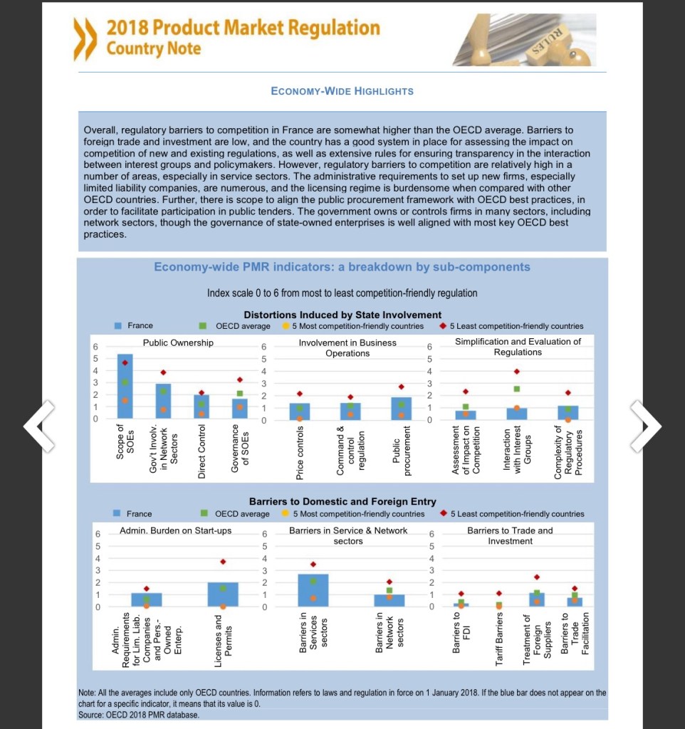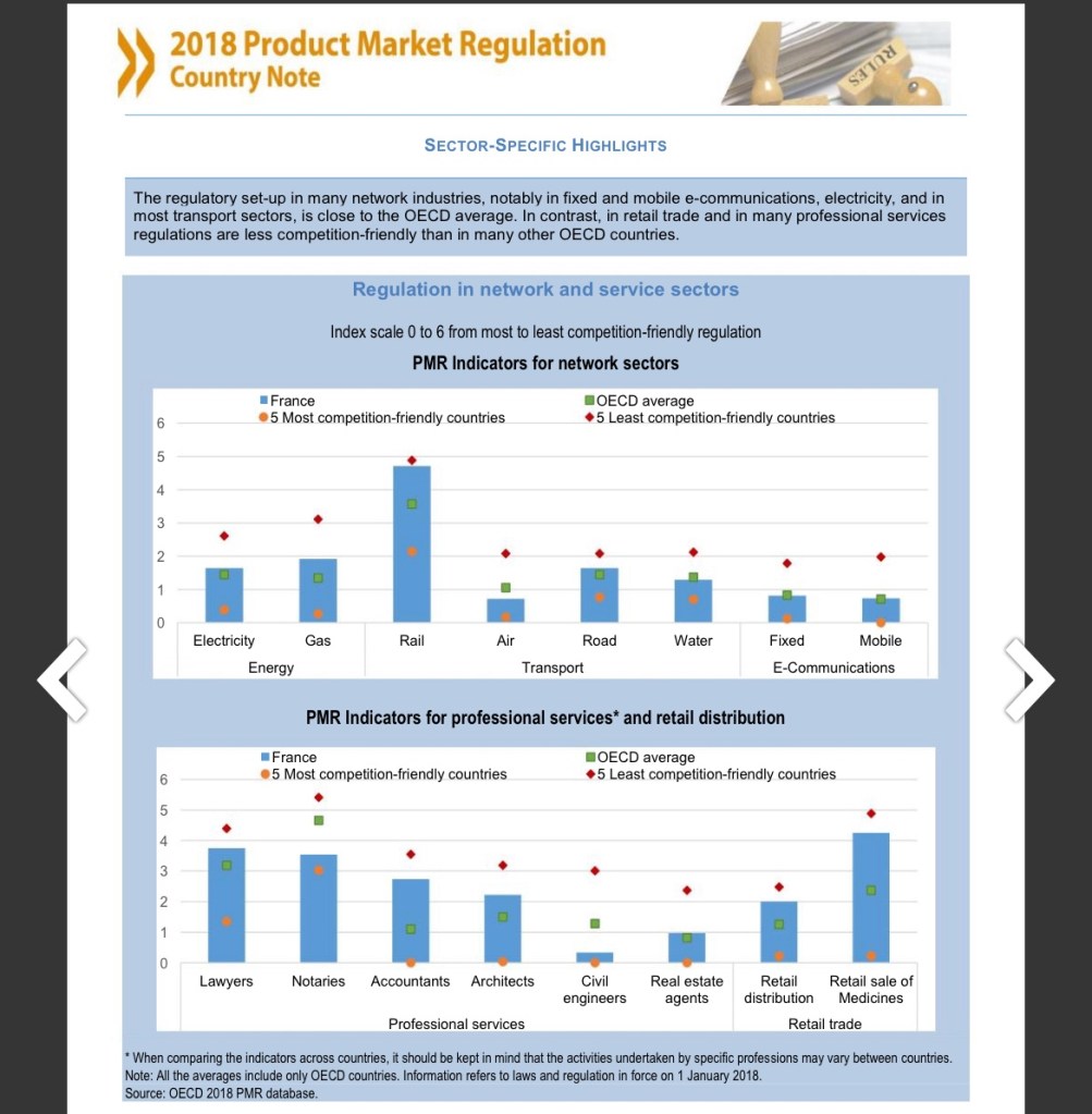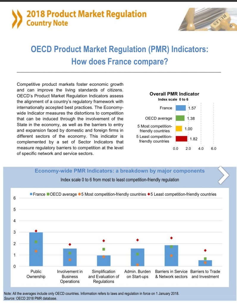 2. La France également très mal notée – 33 eme – dans l’indicateur de la réglementation des marchés de produits de l’OCDE.