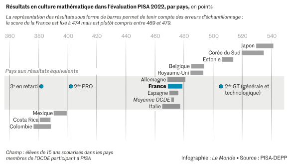 Pour cette huitième édition, « Pisa 2022 », qui aurait dû être publiée l’an dernier mais qui a été décalée d’un an à cause de la pandémie de Covid-19, 690 000 élèves de 15 ans dans 81 pays et économies ont été questionnés, soit environ 8 000 élèves en France, scolarisés dans 335 collèges et lycées français. Pendant près de trois ans, jusqu’à la prochaine édition, l’OCDE va plancher sur cette incroyable mine d’informations pour en tirer des leçons et des recommandations sur les bonnes pratiques éducatives.