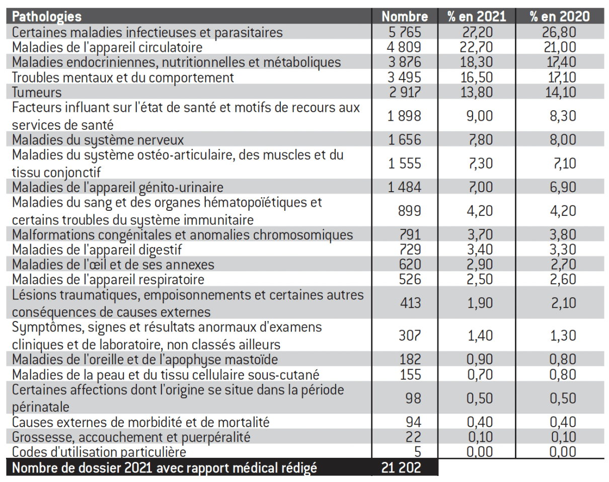 Pathologies indiquées par les demandeurs d’un permis de séjour pour des raisons médicales (2020-2021)
