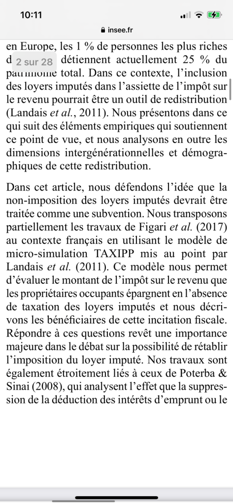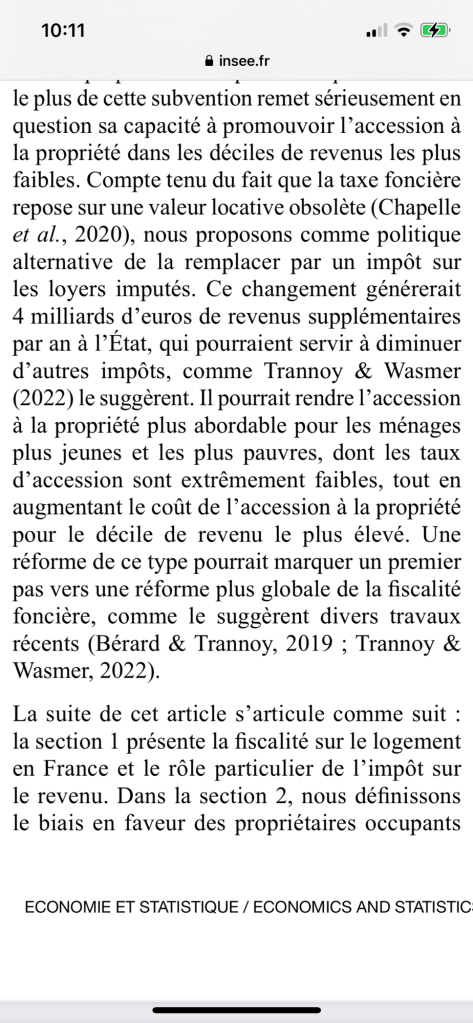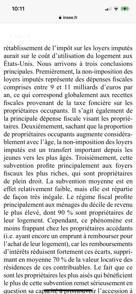 1. ARTICLE : Cette étude compte relancer l’idée de taxer les loyers fictifs des propriétaires occupants