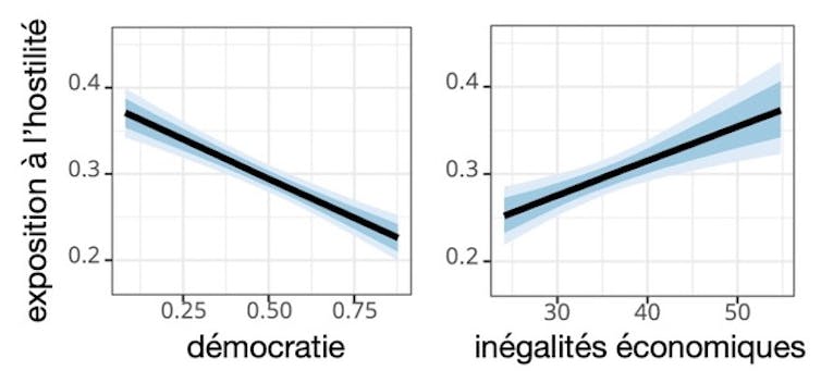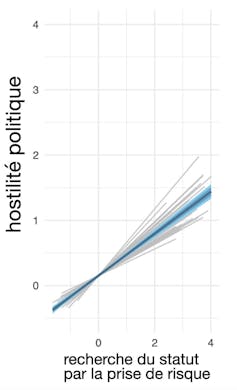 Notre étude montre en outre que les individus qui s’adonnent le plus à l’hostilité en ligne sont aussi ceux qui sont les plus disposés à la recherche de statut social par la prise de risque. Ce trait de personnalité correspond à une orientation vers la dominance, c’est-à-dire à chercher à soumettre les autres à sa volonté (y compris par l’intimidation). Dans nos données interculturelles, nous observons que les individus ayant ce type de traits dominants sont nombreux dans les pays inégalitaires et non démocratiques. Des analyses indépendantes montrent d’ailleurs que la dominance est un élément clé de la psychologie de la conflictualité politique, puisqu’elle prédit également davantage de partage de ‘fake news’ moquant ou insultant les opposants politiques sur Internet, et plus d’attrait pour le conflit politique hors ligne, notamment.