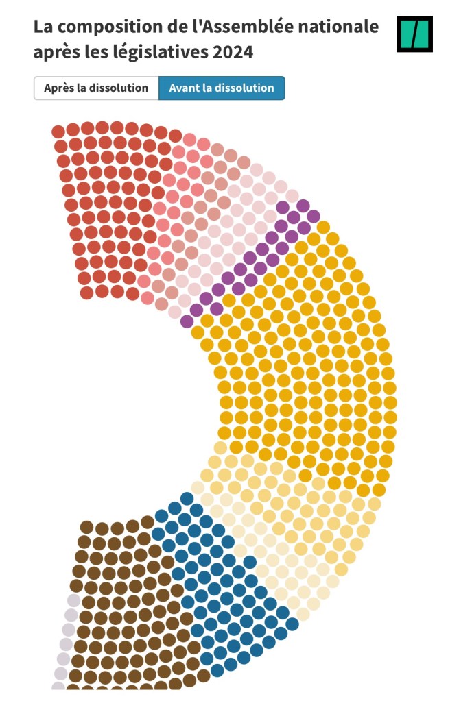Au lendemain d’une séquence institutionnelle surréaliste dont personne ne trouve la logique – défaite électorale aux européennes, dissolution sans les consultations imposées par la Constitution, défaite aux législatives, refus de démission du 1er ministre – le PR a mandaté son camp pour recréer une majorité présidentelle structurée autour de la feu majorité, et a déclaré attendre la « structuration « de l’Assemblée pour désigner un nouveau 1er ministre.
