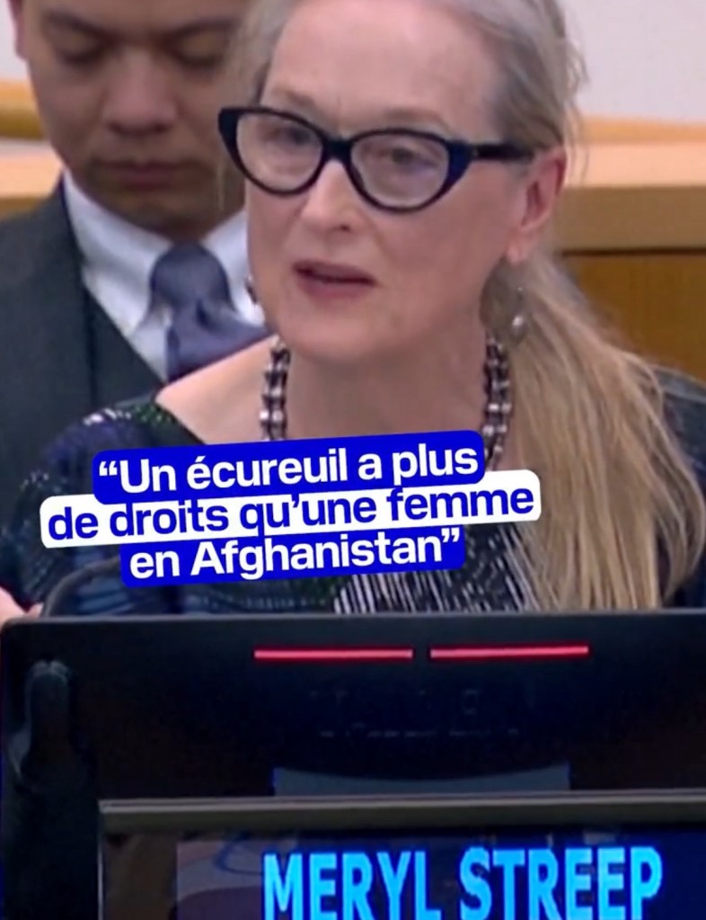 « Un écureuil a plus de droits qu’une fille en Afghanistan. » Lundi 23 septembre, Meryl Streep a été invitée à s’exprimer devant l’Organisation des nations unies (ONU) pour défendre la cause des femmes et des jeunes filles en Afghanistan. L’actrice américaine a déploré le fait qu’« aujourd’hui à Kaboul, un chat a plus de droit qu’une femme ou qu’une jeune fille parce qu’un chat peut sentir le soleil sur son visage et peut chasser un écureuil dans un parc, mais pas elles. »