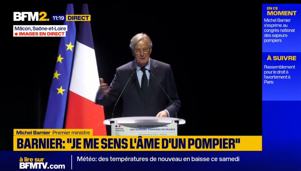 – Mauvais bail. Michel Barnier s’est rendu à Mâcon, en Saône-et-Loire, ce samedi 28 septembre, pour participer au 130e congrès des sapeurs-pompiers. Son premier déplacement hors de Paris depuis qu’il a été nommé chef du gouvernement. L’occasion pour le nouvel homme fort de l’exécutif de délivrer son premier discours du genre dans ses nouveaux habits, et d’évoquer sa propre situation (précaire) à Matignon.