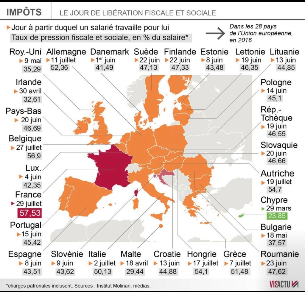 Le taux des prélèvements obligatoires : la France en tête – malgré les discours et promesses