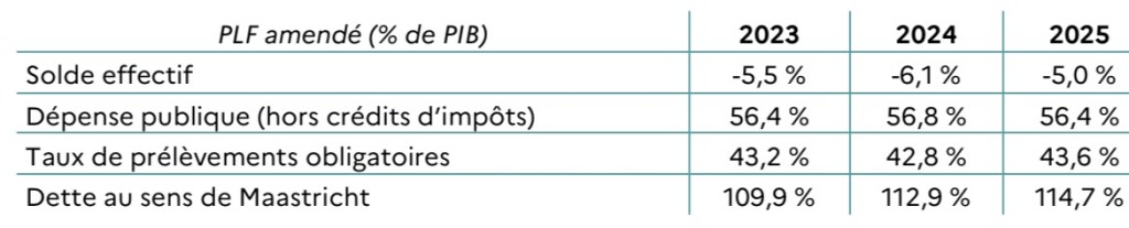 Cancre de la zone euro, avec le troisième ratio d’endettement le plus élevé derrière la Grèce et l’Italie, la France vise désormais un déficit public de 5,4% du PIB en 2025 (contre 5% pour le précédent gouvernement).