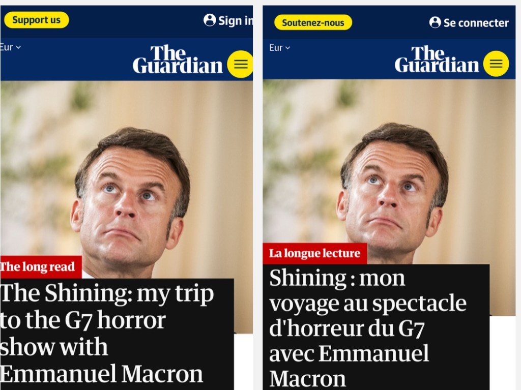 Près de sept ans plus tôt, en septembre 2017, j’avais voyagé dans l’avion présidentiel avec Macron, dont je faisais le portrait pour le Guardian. C’était au début de son premier mandat, et tout semblait aller pour le mieux pour lui. Nous nous dirigions vers Saint-Martin, un territoire d’outre-mer des Caraïbes récemment ravagé par un ouragan, puis vers Athènes, où Macron prononça un discours crucial sur la civilisation européenne. Rétrospectivement, cette époque paraît presque insouciante, quand on sait que notre voyage vers le G7 se déroulait sur fond de guerre en Ukraine, de destruction systématique de Gaza, d’une catastrophe écologique désormais irréversible et, les deux jours précédents, de frappes israéliennes contre l’Iran, que certains considéraient comme le prélude à la Troisième Guerre mondiale. Tout cela m’a amené à me demander si, dans sept ans, nous nous souviendrons avec nostalgie des calamités actuelles, tant le chaos semble être devenu incontrôlable et imparable.