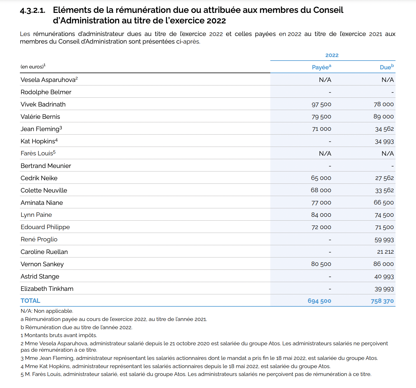 Au final, c’est toute la place financière de Paris qui s’est trouvée abîmée par cette cacophonie, la responsabilité des administrateurs et présidents, pourtant garants de l’intérêt social de l’entreprise, n’ayant à ce jour jamais été engagée. Au passage, on peut se demander quel rôle a joué l’ancien Premier ministre Edouard Philippe, qui a siégé au CA de septembre 2020 à mai 2023. Le maire Horizons du Havre a du pourtant être très assidu dans son suivi de l’entreprise : il a été rémunéré à plus de 70 000 euros par an quand l’indemnisation fixe annuelle des administrateurs était fixé à 20 000 euros de part fixe et 2 500 euros de part variable, par réunion « à laquelle l’administrateur assiste », selon le document universel d’enregistrement d’Atos. Ce qui fait, à ce tarif, plus d’une vingtaine de symposium par an…