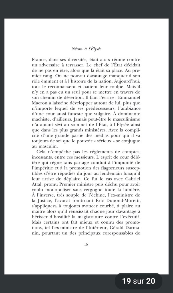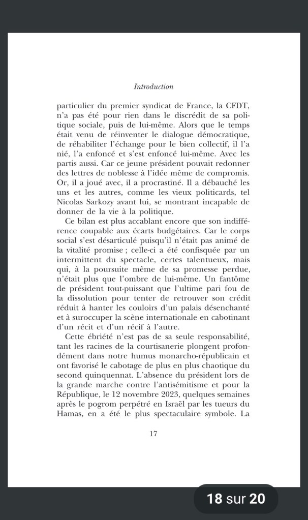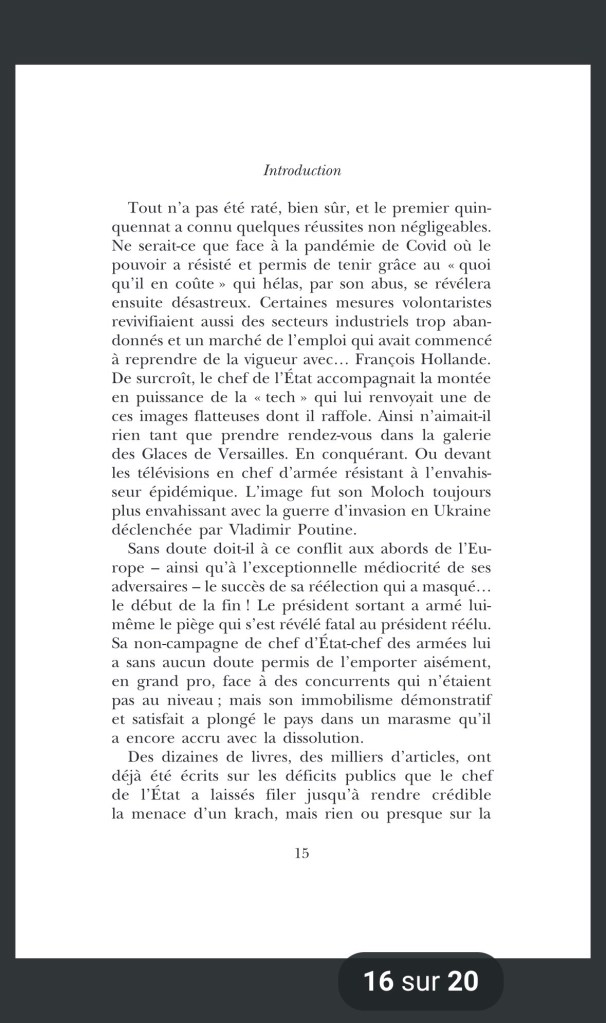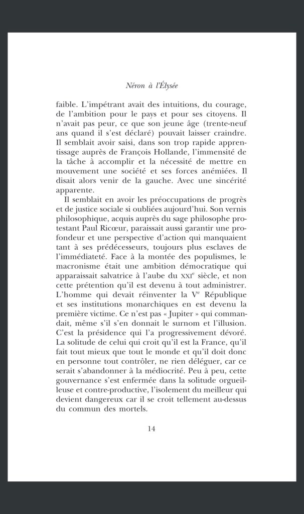 Selon l’éditeur, les deux journalistes écrivent «l’histoire d’un homme exceptionnel… qui s’est exceptionnellement planté !» et a dérivé «au gré des événements dans un narcissisme aigu dont témoigne la dissolution de l’été 2024.»