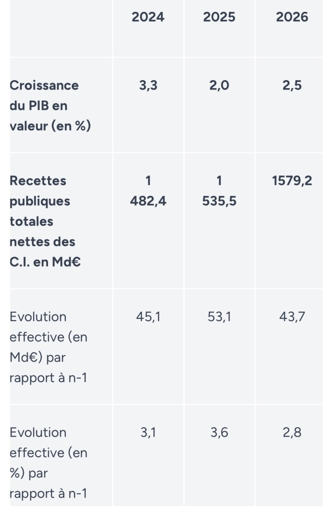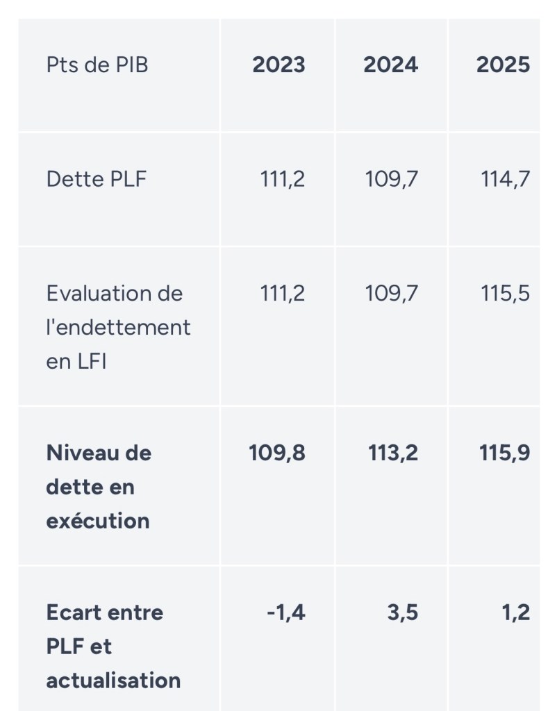 DETTE RAPPORTÉE AU PIB 44 % (43,7 en 2025 )