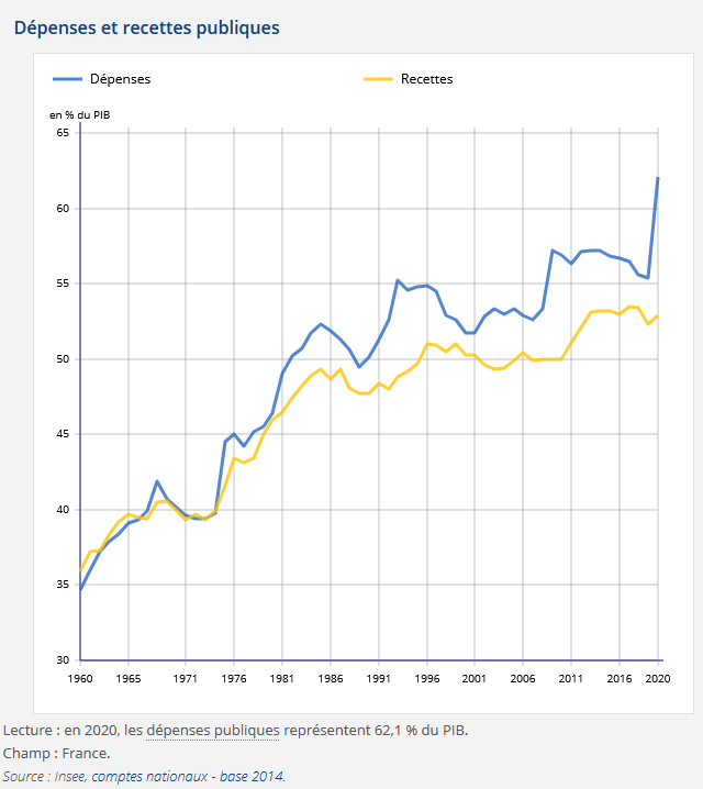 Et ce n’est pas tout : nous n’avons pas compté tous les actifs du secteur privé qui vivent de la commande publique. Bien que leur revenu soit déterminé par le marché, il est indirectement affecté par les décisions du Parlement sur les dépenses. Ces chiffres ne devraient surprendre personne : la part des dépenses publiques dans le PIB s’élevait à 58,2% en 2025 selon l’INSEE. Autant dire que l’Etat distribue directement ou indirectement une énorme part du revenu national.